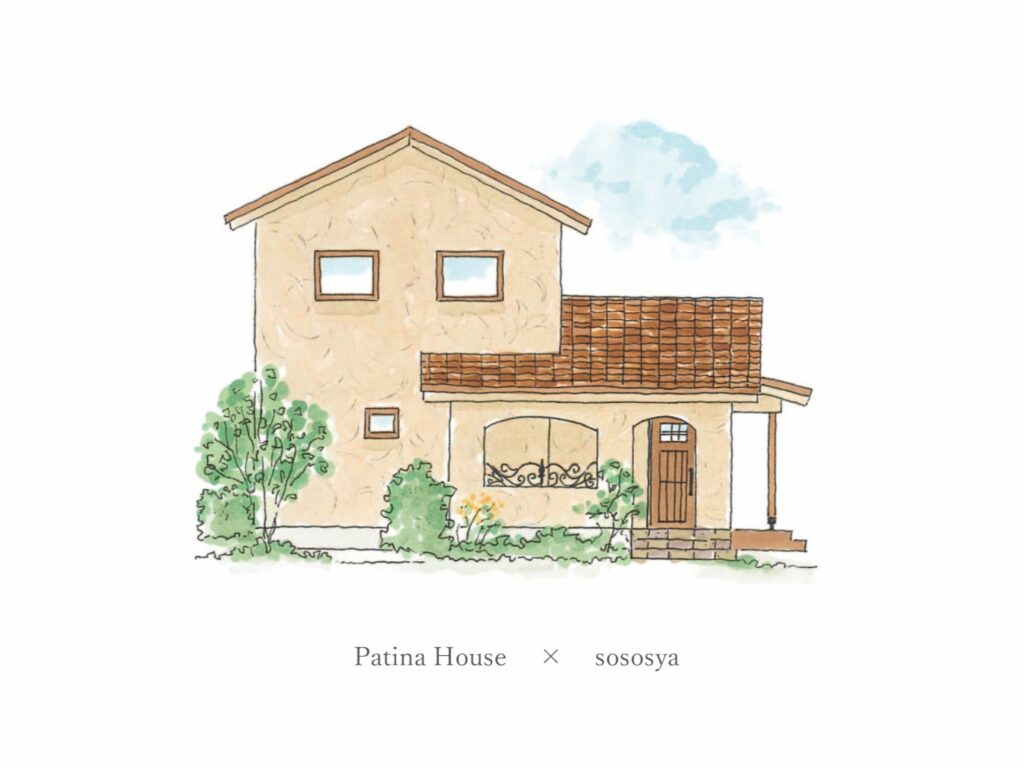 Patina House(パティーナ・ハウス) ◇2階建て◇ セレクトされたアンティーク雑貨のように 年月を重ねたことにより生まれる 経年変化を愛でる住まいです。 【ポイント】 ・アイアンやタイル、ピンクベージュの壁が目を惹く可愛らしい外観 ・居室以外にも家族それぞれが楽しめる小部屋を設けました